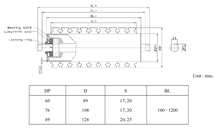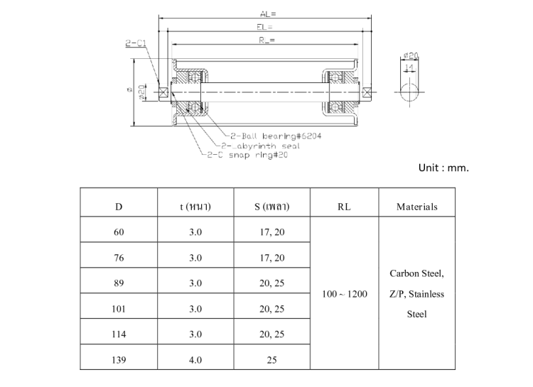 สำหรับลูกกลิ้งรองใต้สายพานหน้ากว้างรุ่น 20 นิ้ว (500 มม.) และรุ่น 22 นิ้ว (600 มม.) ทางเรามี stock พร้อมส่ง