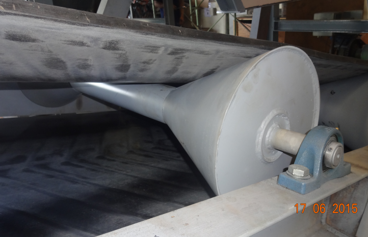 ลูกกลิ้งหลอดด้าย (Thread spool type roller) เป็นลูกกลิ้งรองใต้สายพานลำเลียงชนิดแอ่ง เหมาะในการใช้งานลำเลียงวัสดุที่เปียกชื้น หรือมีโอกาสที่จะโดนความชื้น และวัสดุลำเลียงที่มีน้ำหนักปานกลาง ใช้กันมากในอุตสาหกรรมแป้งมัน การลำเลียงมันสำปะหลัง มันเส้น ข้าวโพด ถั่ว และข้าว วัสดุที่ใช้สามารถผลิตสามารถเลือกได้ทั้งเหล็กหรือสแตนเลส